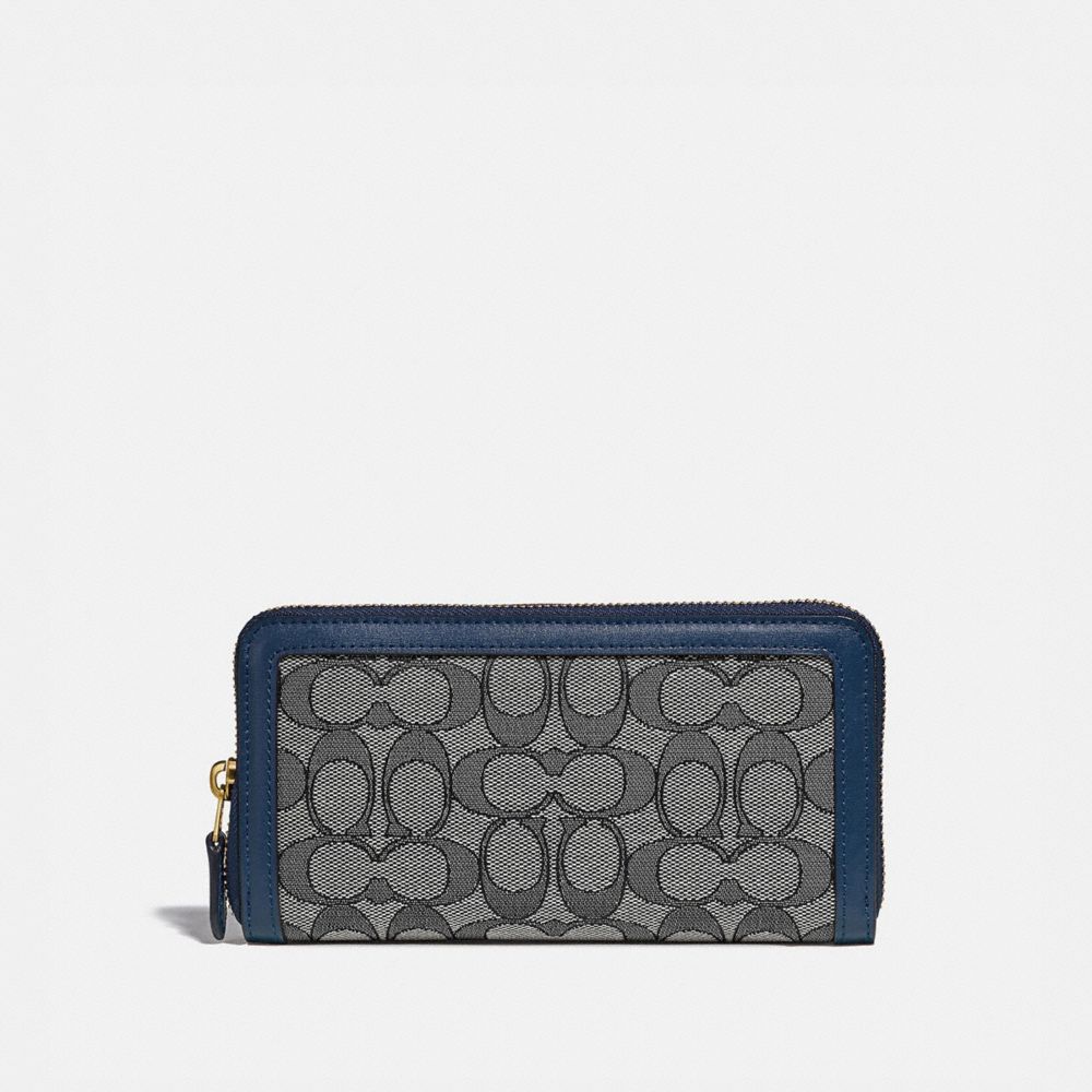Crafted of our Signature jacquard and refined leather, this expandable design unzips to reveal a spacious interior. It accommodates an iPhone X and features 12 card slots, two full-length bill compartments and a coin purse to keep essentials organized.