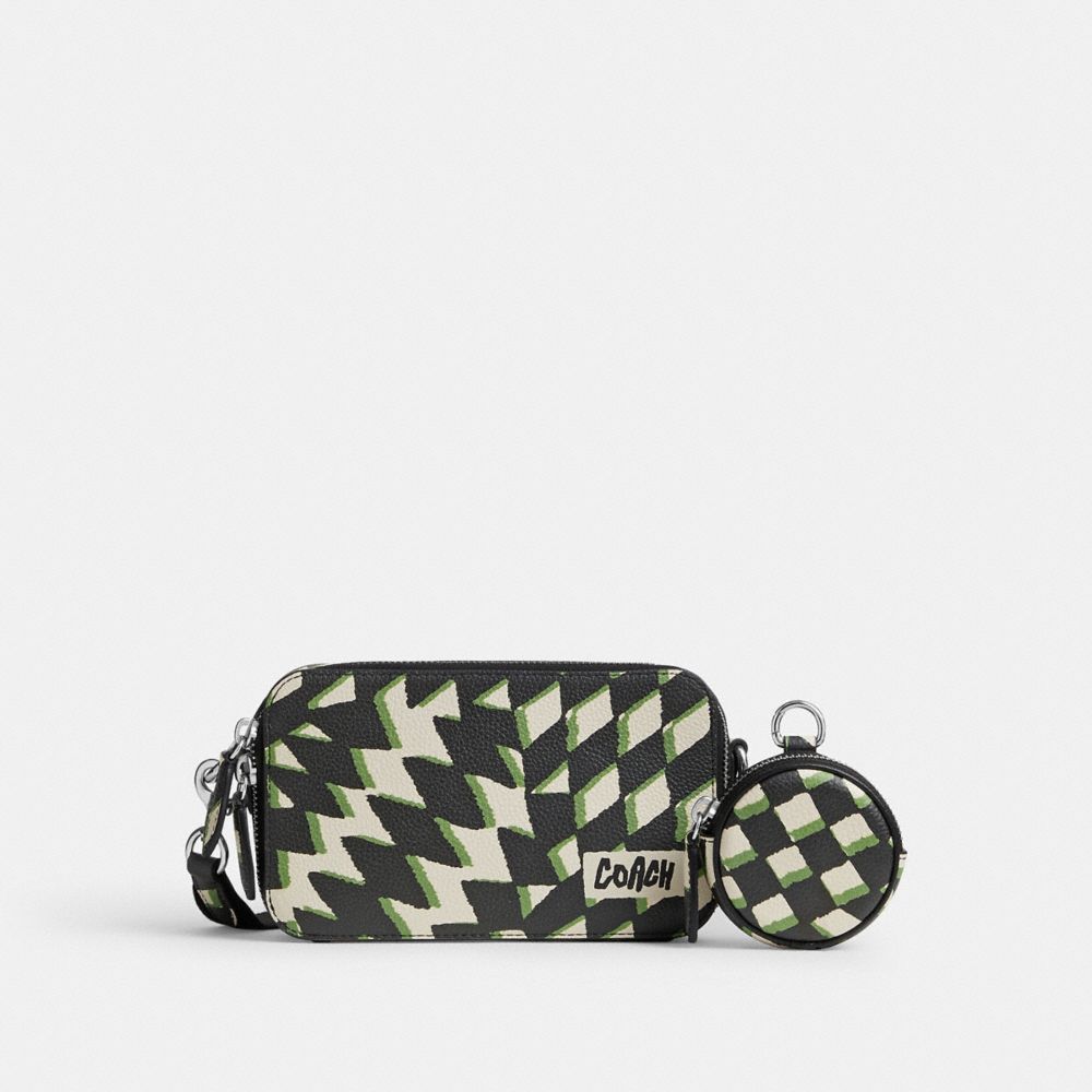 For adventures near and far, our Charter is designed to make every journey, commute and errand feel like a first-class experience. This compact one compartment crossbody is crafted of leather detailed with a retro-cool surfer-inspired geometric print and features a detachable round zip pouch to hold small essentials. Slip it into a larger bag or convert it to a small messenger with the detachable strap.