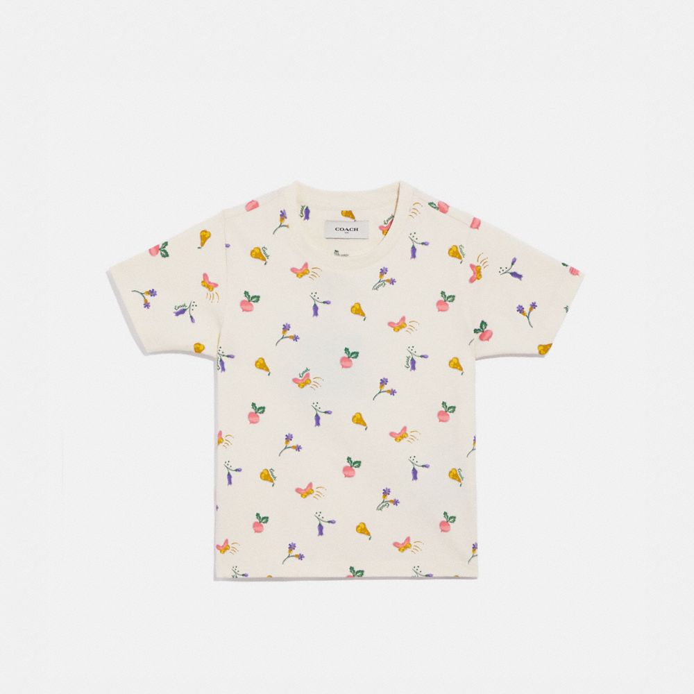 Crafted of certified organic cotton made without the use of harmful chemical fertilizers and pesticides, this T-shirt is part of Coach Forever, a collection inspired by our commitment to rethinking and reducing our impact on the planet. The classic-fit children's style celebrates the great outdoors with a playful garden motif.