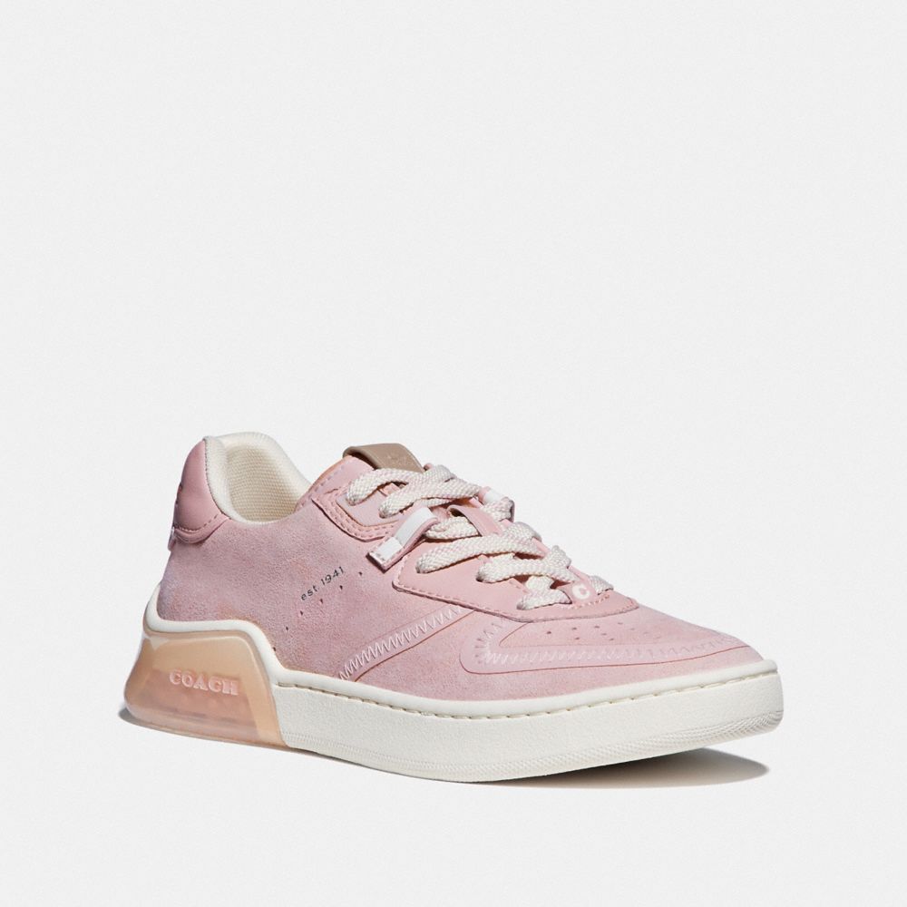 Built for the urban obstacle course, our lightweight Court sneaker is made with proprietary Coach CitySole technology for maximum comfort and flexibility. Based on traditional basketball shoes, this Court silhouette sits at the intersection of fashion and function. Crafted of velvety suede with smooth leather details, it features 3M binding on the upper and a transparent heel with shock-absorbing cushioned pods that provide all-day support. It’s finished with a grooved sole for superior movement and traction. Your feet will thank you.
