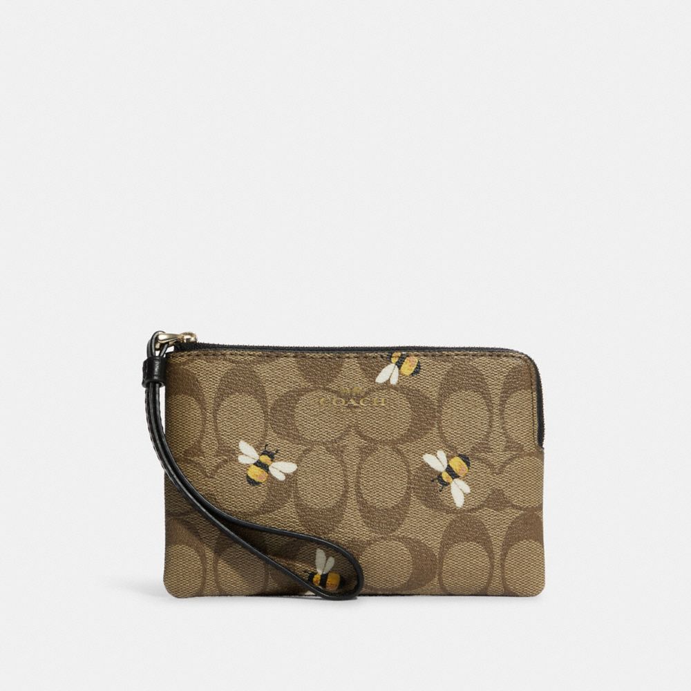 Corner Zip Wristlet In Signature Canvas With Bee Print
