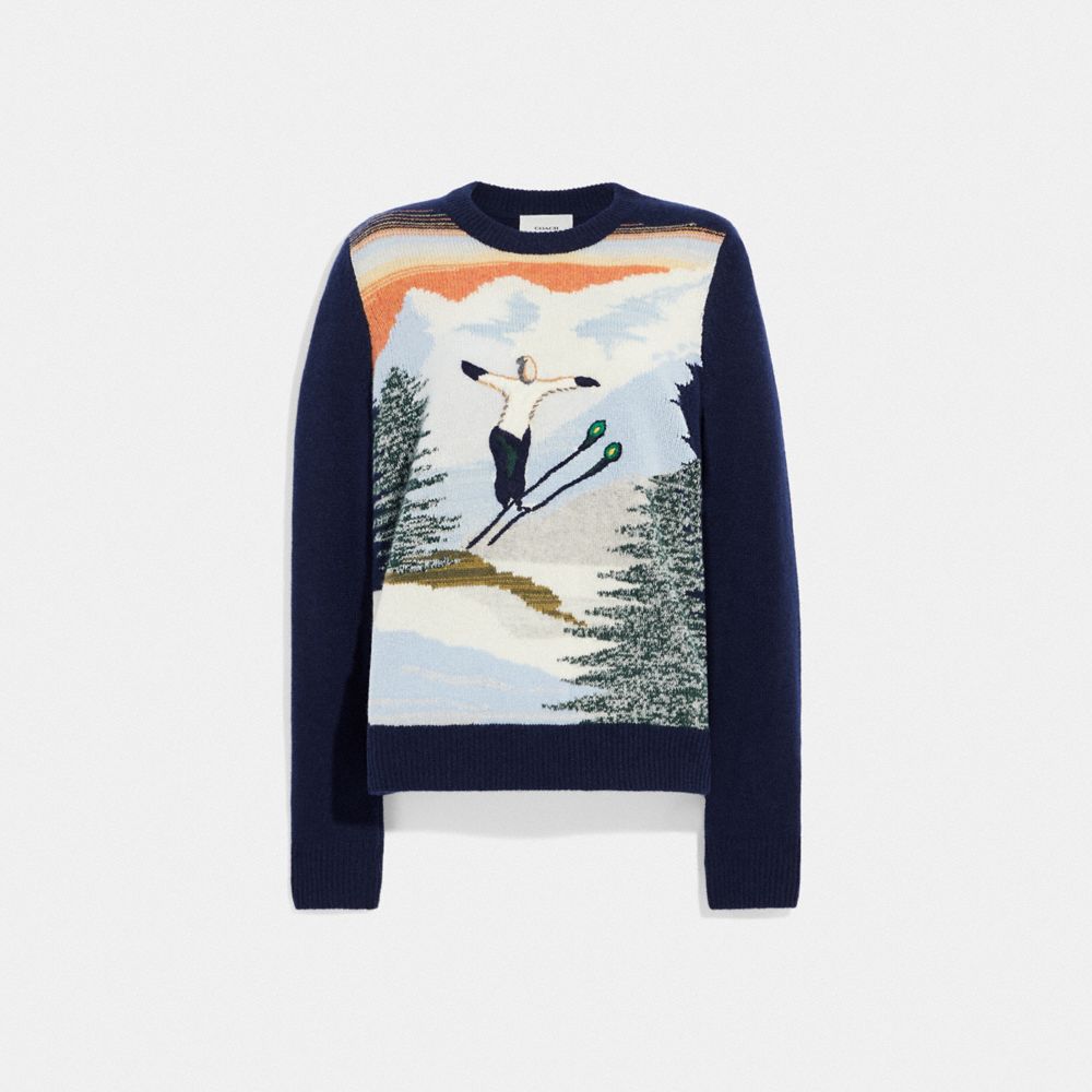 Crafted of recycled cashmere threads and respun wool, this comfy intarsia-knit sweater is part of Coach Forever, a collection inspired by our commitment to rethinking and reducing our impact on the planet. Featuring a sporty retro ski scene, the crewneck is a cozy, nostalgic ode to winter weather.