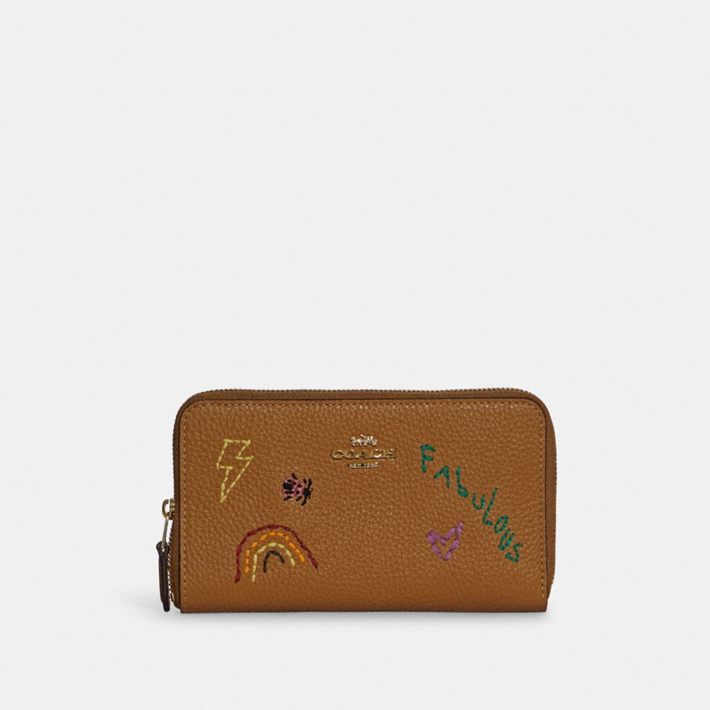 Medium Id Zip Wallet With Diary Embroidery