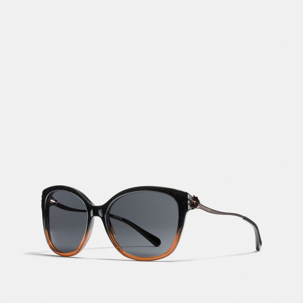 These oversized gradient frames shimmer with a hint of glitter. They’re detailed with signature Tea Roses at the temples, and solid lenses with 100% UV protection.